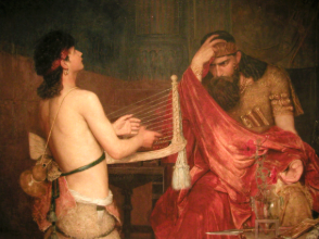 David och Saul är ett dramatiskt historiemåleri som visar ögonblicket när David spelar harpa för kung Saul. Målningen speglar Josephsons intresse för bibliska motiv och hans skicklighet i att gestalta starka känslor.