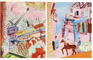 Skördemaskiner och violett lyftkran (1916) och Det blå lokomotivet (1919)